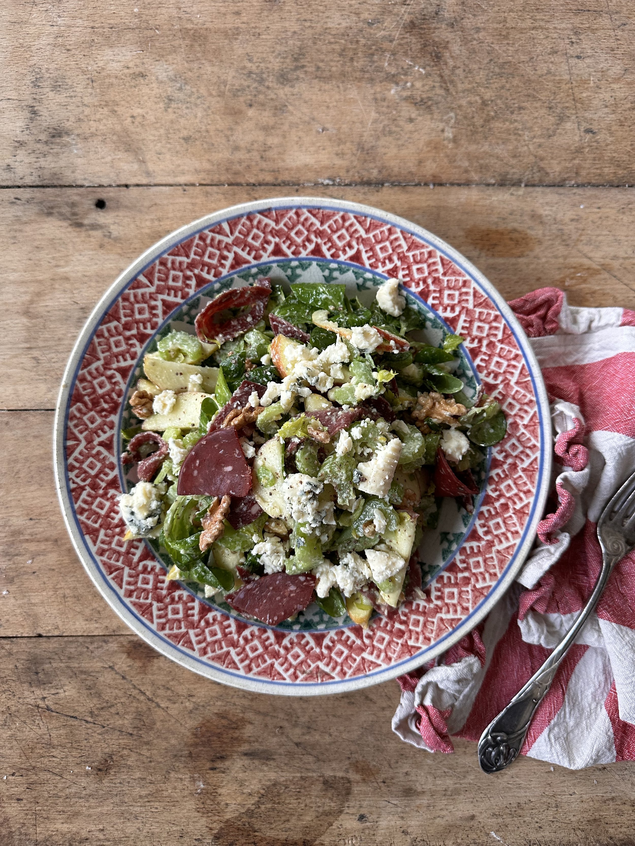Celery, blue cheese and salami salad
